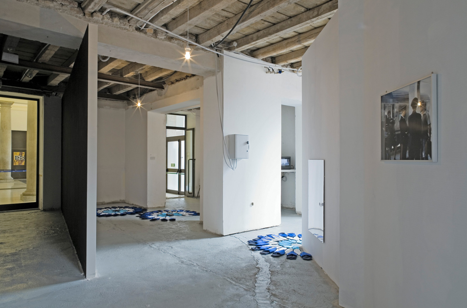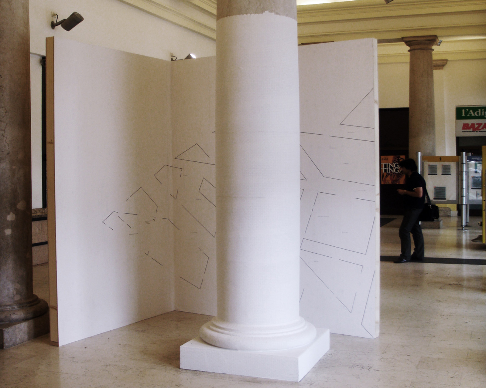 Design of the exhibition display by Office for Cognitive Urbanism (Andreas Spiegl and Christian Teckert) at the Rovereto Railway Station, Manifesta 7, Rovereto, 2008
